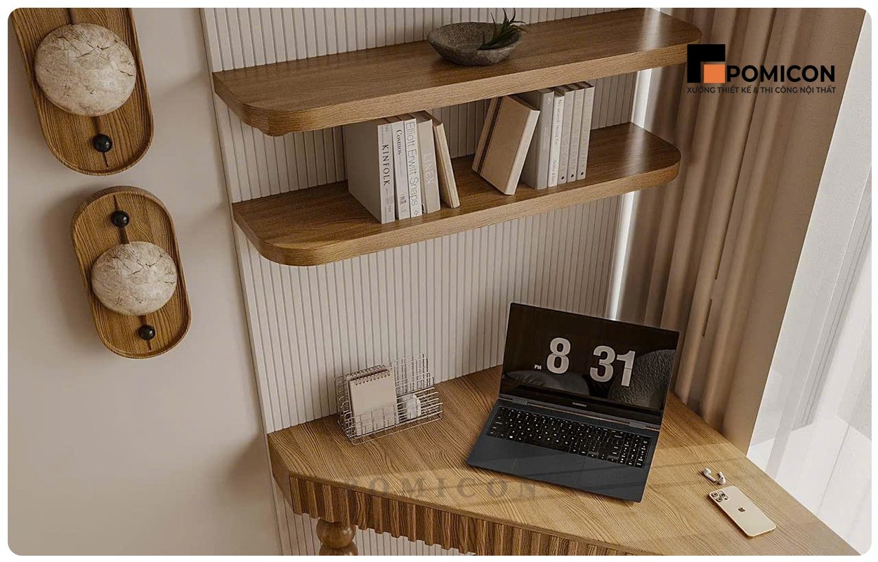 Ngoài các món nội thất chính, Pomicon còn cung cấp kệ tivi, bàn làm việc, tủ sách và kệ trang trí bằng gỗ công nghiệp. Kết hợp cùng rèm cửa, tranh treo tường hoặc giấy dán tường, phòng ngủ trở nên sinh động và ấm cúng. Các sản phẩm đều đảm bảo độ bền, dễ lau chùi và an toàn cho sức khỏe người dùng.