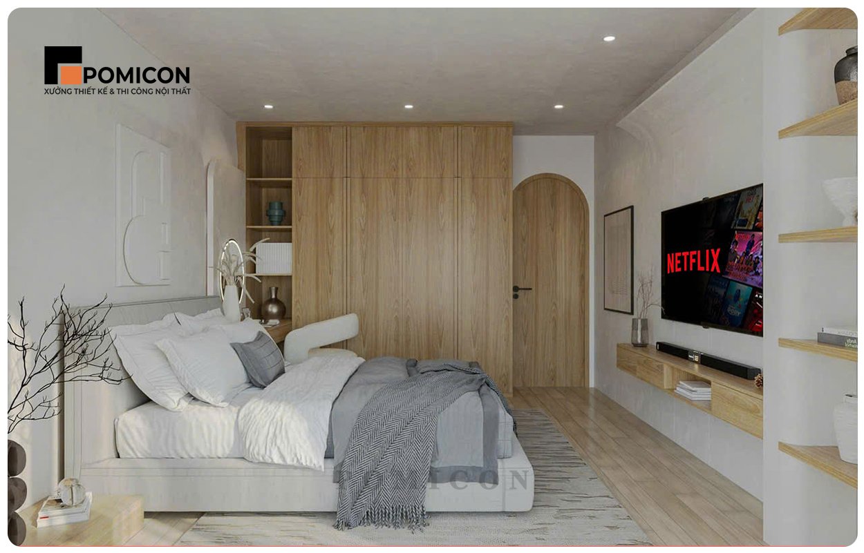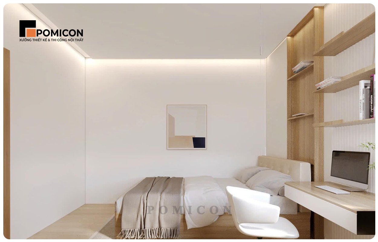Ngoài các sản phẩm chính, POMICON còn cung cấp bàn làm việc nhỏ, kệ tivi treo tường hoặc tủ sách gọn gàng. Những hạng mục này giúp phòng ngủ trở nên đa năng hơn, vừa để nghỉ ngơi, vừa phục vụ nhu cầu làm việc, học tập hoặc giải trí. Việc kết hợp nội thất thông minh còn tạo sự cân bằng giữa công năng và thẩm mỹ, biến phòng ngủ thành một không gian sống đa chiều.