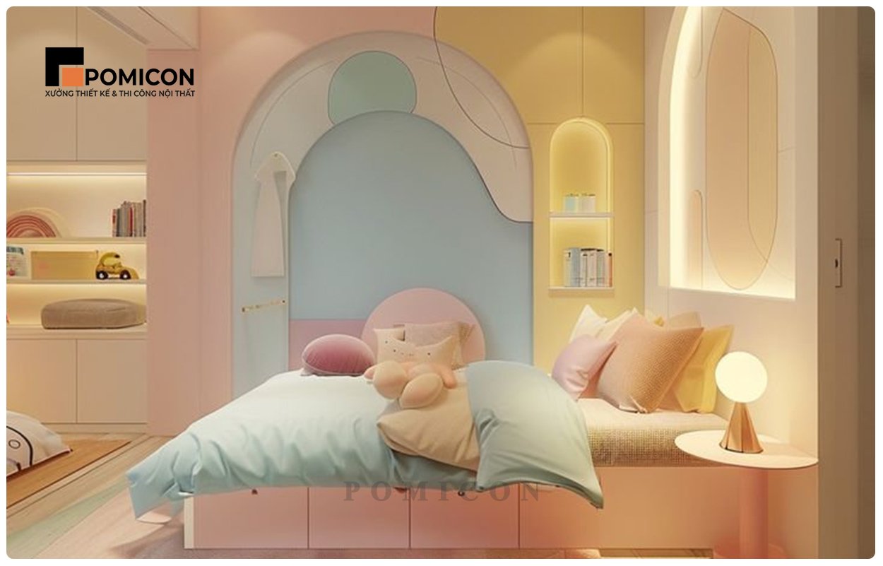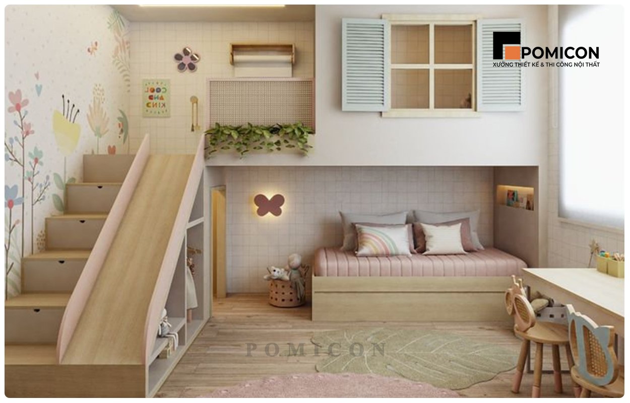 Phòng ngủ đóng vai trò rất lớn trong việc định hình tâm lý của trẻ nhỏ. Một không gian thoáng sáng, màu sắc hài hòa và nội thất vừa tầm giúp bé cảm thấy thoải mái, an toàn và vui vẻ hơn mỗi ngày. Vì vậy, POMICON luôn chú trọng từng chi tiết — từ lựa chọn vật liệu, màu sơn, cho đến ánh sáng và cách bố trí đồ nội thất — để đảm bảo phòng ngủ không chỉ đẹp mà còn hỗ trợ tốt cho sự phát triển tự nhiên của trẻ.