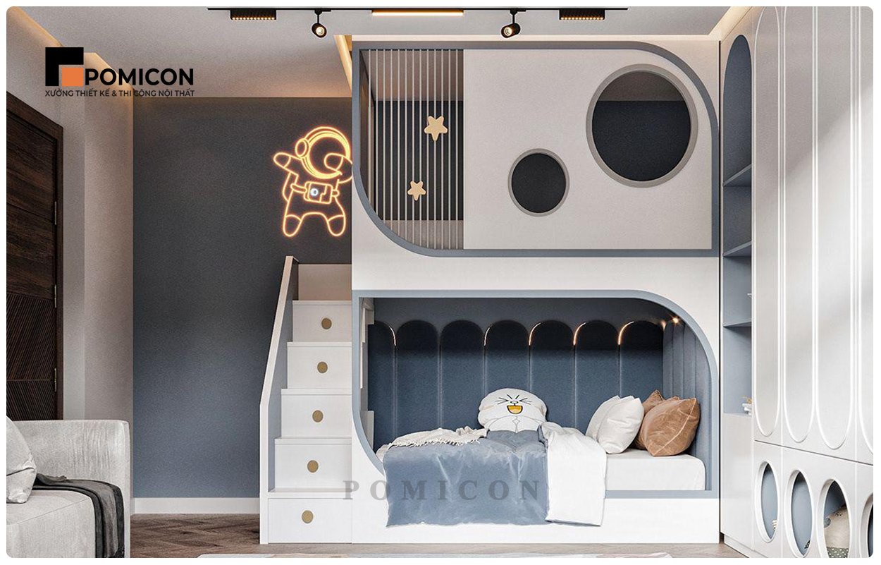 Không gian sống có tác động rất lớn đến cảm xúc, thói quen và khả năng tư duy của trẻ. Khi phòng được bố trí khoa học, ánh sáng hợp lý và màu sắc nhẹ nhàng, bé sẽ cảm thấy thoải mái, vui vẻ và có động lực học tập hơn. POMICON luôn thiết kế dựa trên độ tuổi, giới tính và sở thích riêng của từng bé – đảm bảo căn phòng vừa thể hiện cá tính riêng, vừa tạo nên môi trường phát triển tích cực và tràn đầy năng lượng.