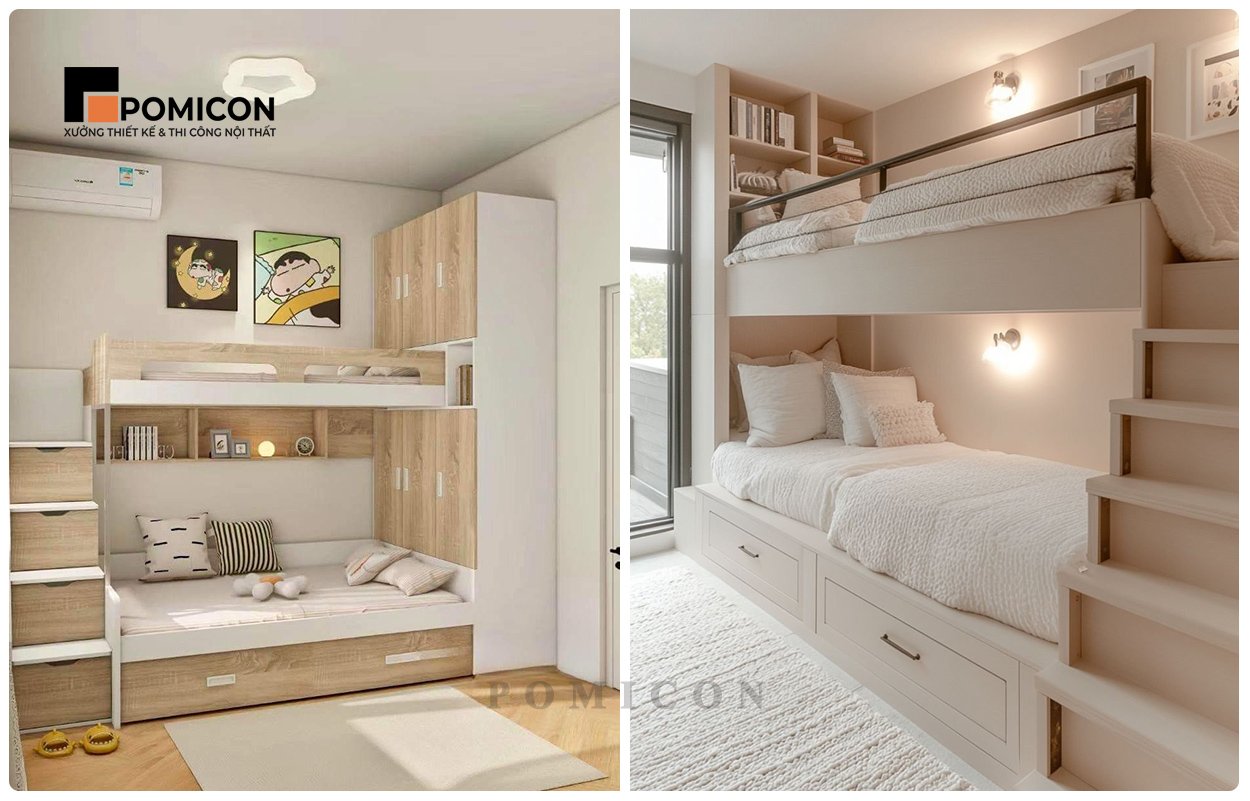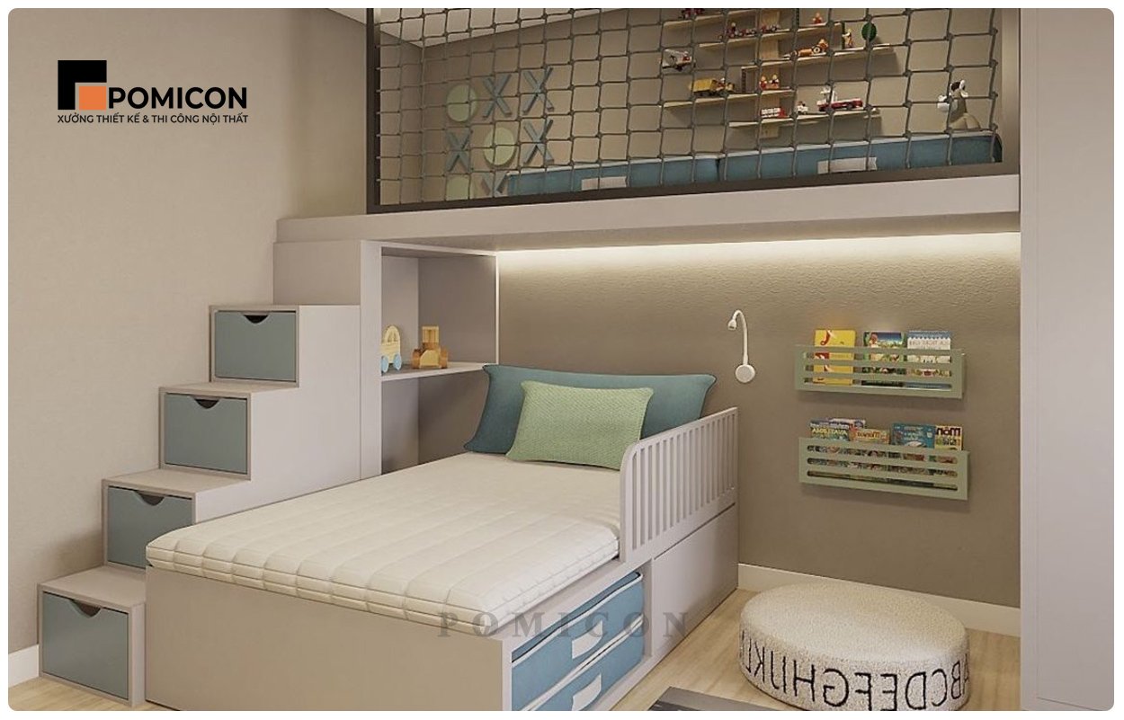 Chọn POMICON nghĩa là chọn sự chuyên nghiệp và tận tâm. Mỗi thiết kế phòng ngủ cho bé của chúng tôi đều hướng đến sự cân bằng giữa công năng – thẩm mỹ – an toàn. Các chi tiết nội thất được bo tròn, xử lý tinh tế để tránh góc nhọn gây nguy hiểm cho trẻ. Hệ thống chiếu sáng, màu sắc và bố cục đều được tính toán kỹ lưỡng để mang lại cảm giác dễ chịu, giúp bé học tập và nghỉ ngơi hiệu quả hơn.