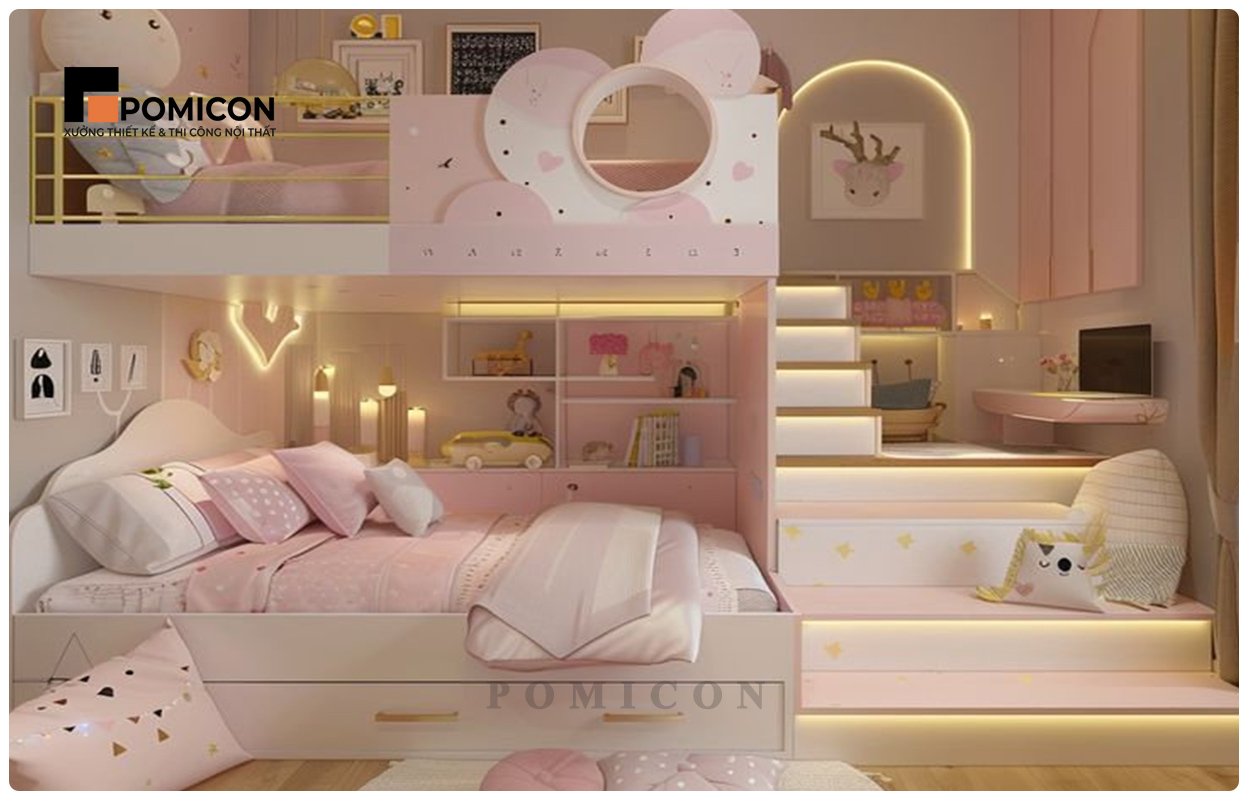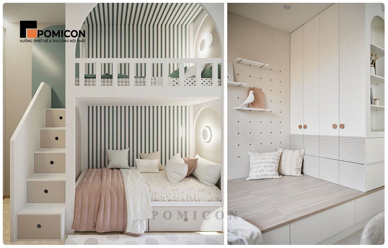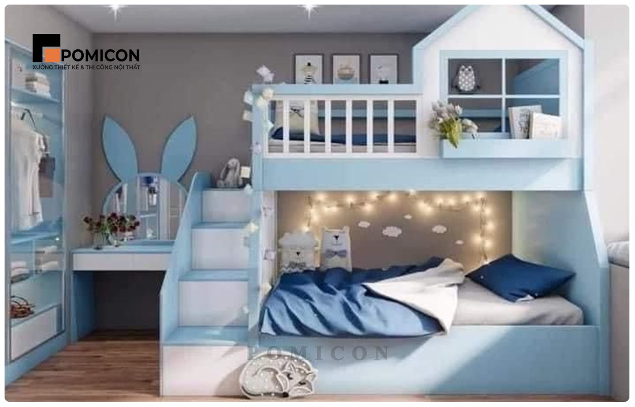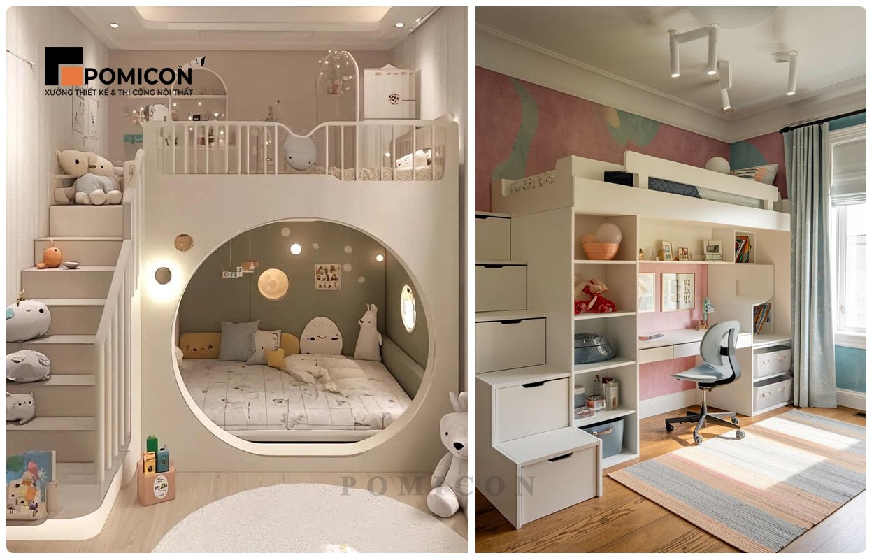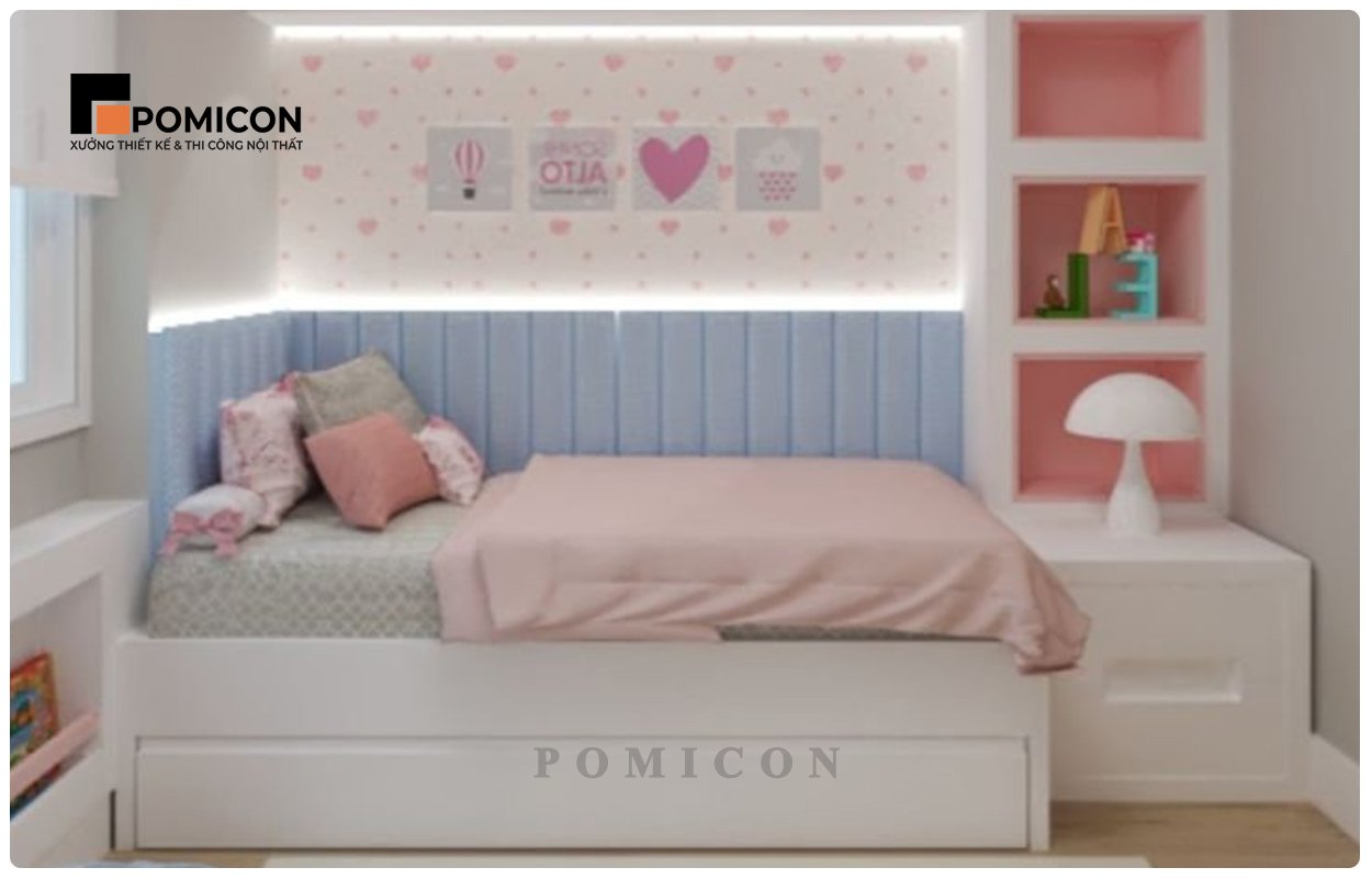 Một không gian phòng ngủ khoa học, được bài trí hợp lý sẽ giúp bé phát triển trí tuệ và cảm xúc ổn định hơn. Màu sắc, ánh sáng và cách sắp xếp nội thất đều ảnh hưởng trực tiếp đến tâm lý và khả năng tập trung học tập của bé. Các bậc cha mẹ tại P. Bình Dương – TP. HCM đang tìm đến POMICON như một giải pháp tối ưu để biến những ý tưởng sáng tạo thành hiện thực.
