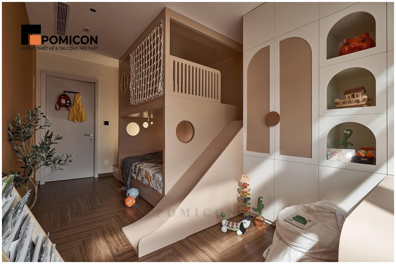 Phòng cho bé được thiết kế phù hợp với từng độ tuổi và nhu cầu sử dụng. POMICON chú trọng yếu tố an toàn, màu sắc hài hòa và công năng học tập. Các hạng mục như giường ngủ, bàn học và tủ đồ được bố trí khoa học. Không gian giúp bé thoải mái sinh hoạt và phát triển toàn diện. Phòng cho bé vừa học tập vừa vui chơi hiệu quả.